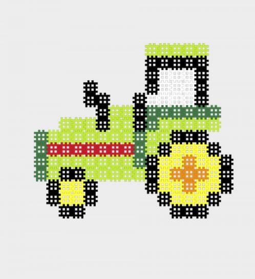 W zestawie 150 elementów oraz propozycja ułożenia obrazka traktora. Oczywiście układać możemy wiele projektów oraz budować również przestrzennie!