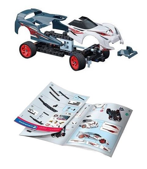 Dzięki tej wyścigówce, którą sam musisz zmontować, poznasz podstawy mechaniki oraz inżynierii. Świetna zabawa przy montażu samochodu gwarantowana. W zestawie ilustrowana instrukcja.