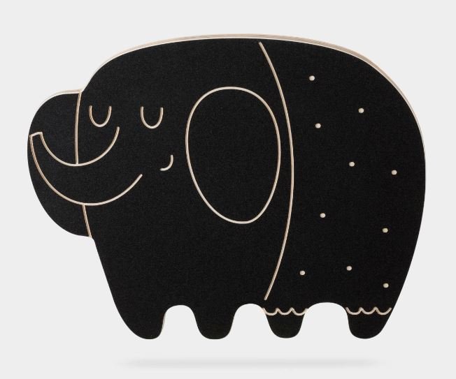 Drewniana tablica z jednej strony pokryta jest farbą tablicową i posiada wygrawerowane elementy. Do zestawu dołączona jest kreda w czterech kolorach. Ciekawy kształt tablicy zachęci malucha do rysowania.