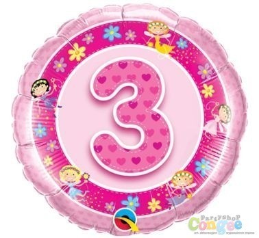Balon foliowy wypełniony helem, balon z okazji trzecich urodzin dziewczynki.