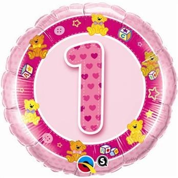 Foliowy, okrągły balon wypełniony helem - na pierwsze urodzinki dziewczynki! Balon w kolorze różowy z motywem misiów, unosi się wpowietrzu przez około 2 tygodnie!