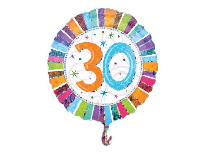 Foliowy, okrągły balon wypełniony helem na 30te urodziny! Zrób niespodziankę urodzinową na okrągłe, trzydzieste urodziny - balon nadaje się zarówno na urodziny mężczyzny jak i kobiety!