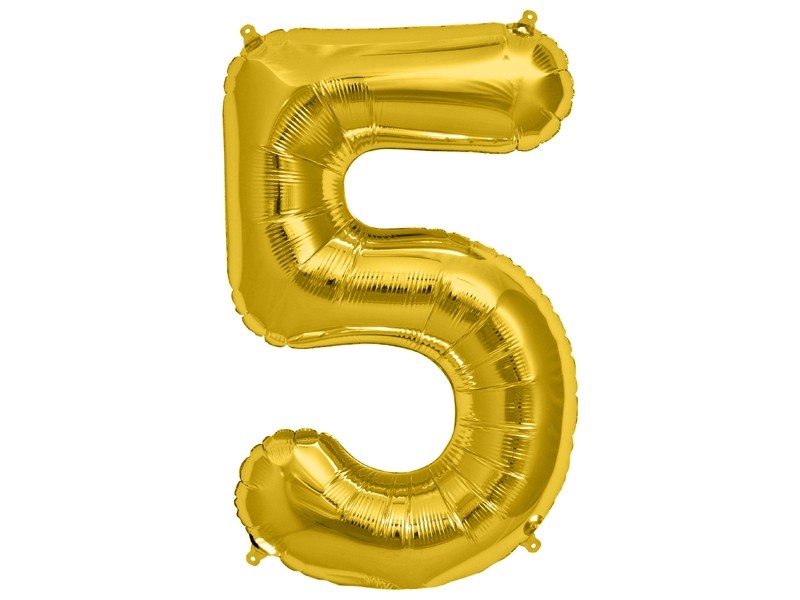 Foliowy, wielki balon w kształcie cyfry 5. W połączeniu z inną cyfrą może posłużyć na różne okazje. Balon jest w kolorze złotym, unosi się w powietrzu przez około 2 tygodnie. Hel dostępny tylko w lokalu w Krakowie.
