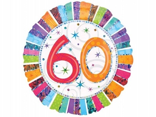 Foliowy, okrągły balon wypełniony helem na 60te urodziny! Zrób niespodziankę urodzinową na okrągłe, sześćdziesiąte urodziny - balon nadaje się zarówno na urodziny mężczyzny jak i kobiety!