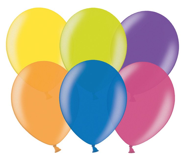W opakowaniu znajduje się 100 sztuk dużych balonów lateksowych o średnicy około 30 cm. W każdym opakowaniu miks kolorów w odcieniu metalicznym.