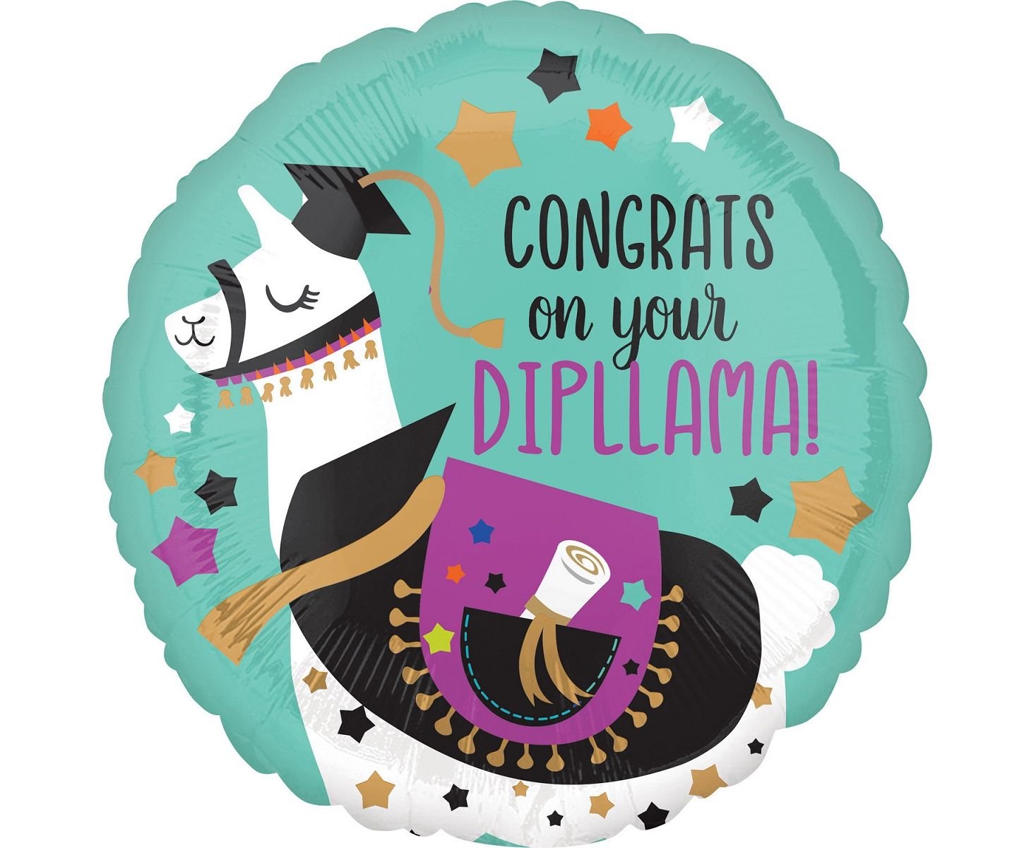 Balon foliowy o średnicy 43 cm z napisem "Congrats On Your Dipllama". Idealny upominek z okazji ukończenia szkoły/studiów. Balon utrzymany w pastelowej kolorystyce.