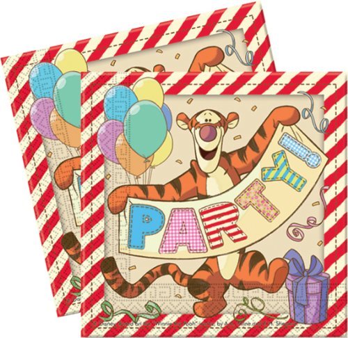 Zestaw 20 serwetek z tygryskiem i napisem Party. Do nabycia także talerzyki oraz kubeczki z Kubusiem Puchatkiem.