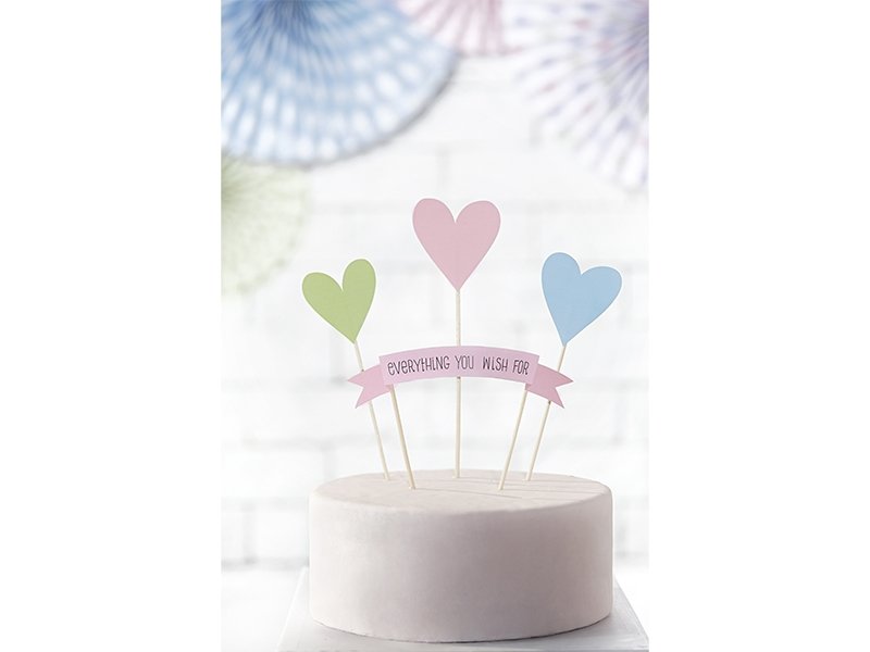 Pastelowy Topper na Ciasto - Serduszka z Życzeniami