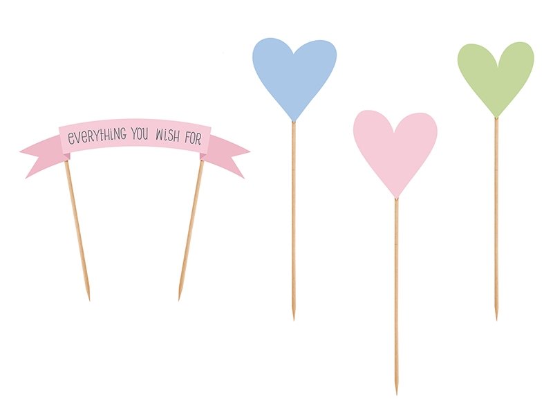 Każde serdukszko znajduje się na osobnym drewnianym patyczku, dzięki czemu można je wbić do tortu w dowolnym miejscu. Dodatkowo napis Evrything You Wish For.