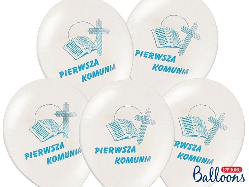 Balony na Komunie - pastelowe białe z napisem Pierwsza Komunia
