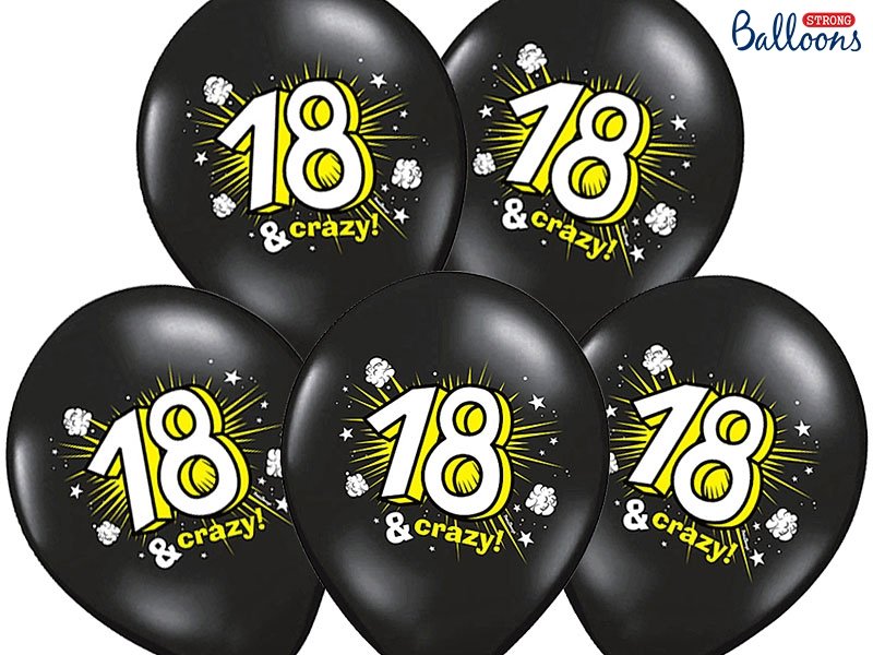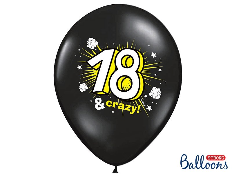 18 & Crazy czarne Balony na 18 stke - 30cm