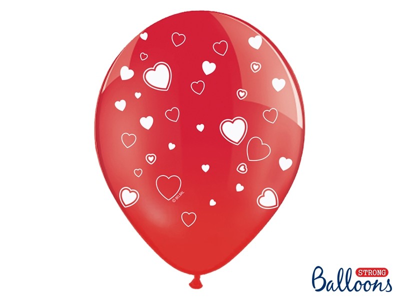 Balon Strong Serca w kolorze Crystal Poppy Red z białym, pięciostronnym nadrukiem. Wielkość: 30 cm (12 cali).