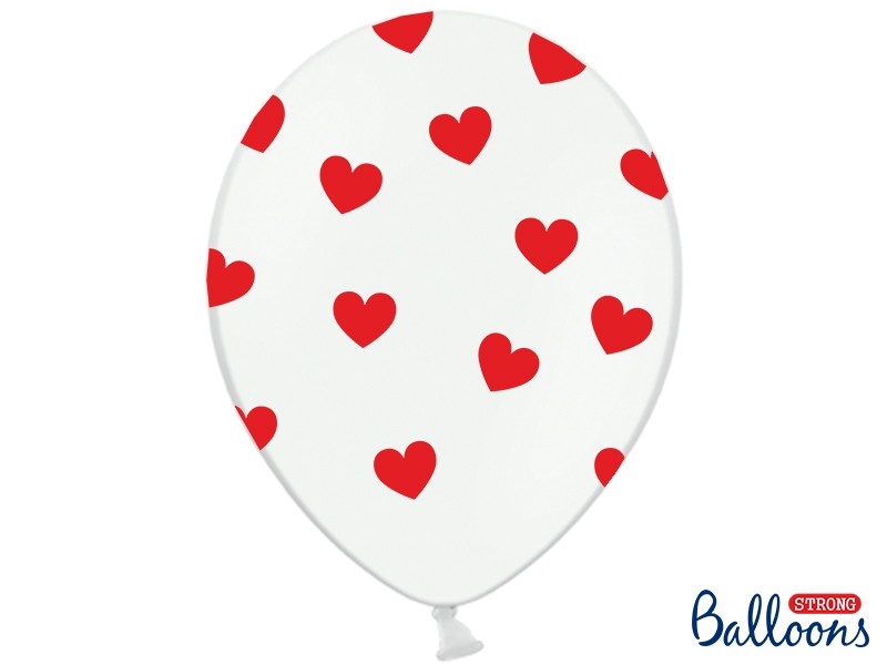 Balony lateksowy - Czerwone serduszka, Pastel pure white