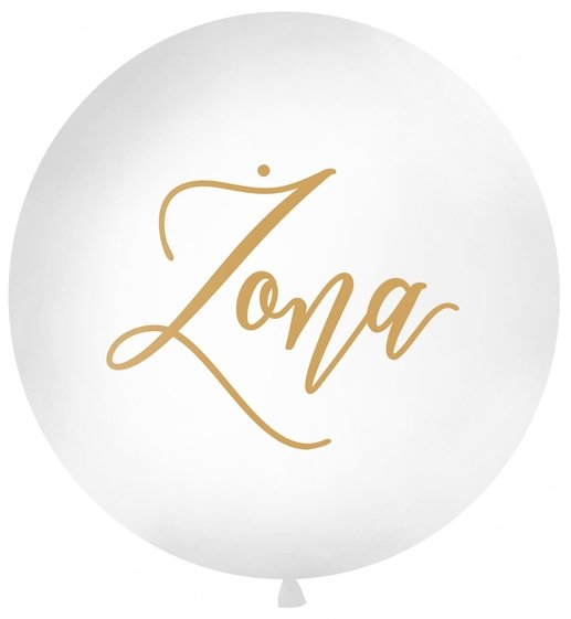 Wielki biały balon Gigant ze złotym nadrukiem "Żona". Balon pięknie będzie się prezentował na przyjęciu weselnym. Balon standardowo pompujemy helem do 60 cm.