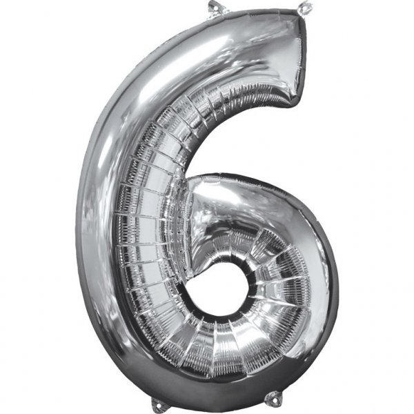 Balon cyfra 6 srebrna - 66 cm