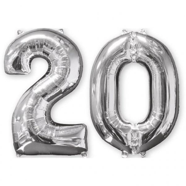 Balon cyfra 20 srebrna - 66 cm