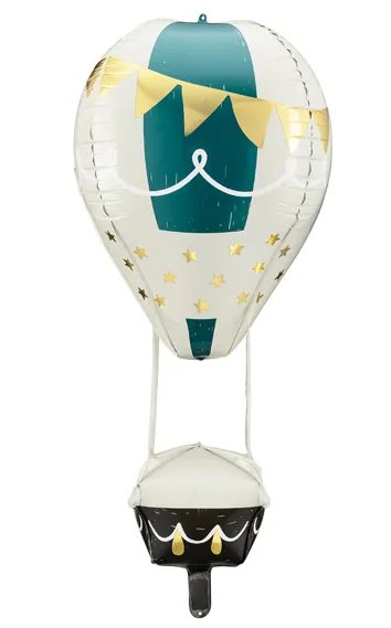 Duży balon foliowy 4D w kształcie latającego balona z koszem. Balon składa się z dwóch części które należy napompować osobno. Balon nadaje się do nadmuchania powietrzem lub helem. W zestawie słomka do nadmuchania. Przepiękna pastelowa kolorystyka. Wysokość około 86 cm po napompowaniu.