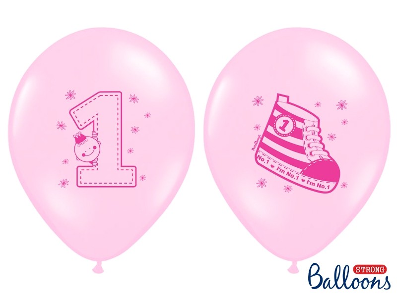 Balon lateksowy (gumowy) z jeden strony nadruk trampek z drugiej jedyneczka. Wspaniały prezent z okazji pierwszych urodzin dziewczynki! Przy zakupie dokonaj wyboru: -sam balon czy np. -balon+hel