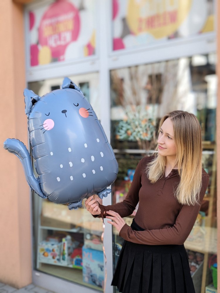Przepiękny balon foliowy w kształcie kotka utrzymany w modnej, pastelowej kolorystyce. Balon idealny na przyjęcie tematyczne, urodzinowe lub jako upominek dla bez okazji!