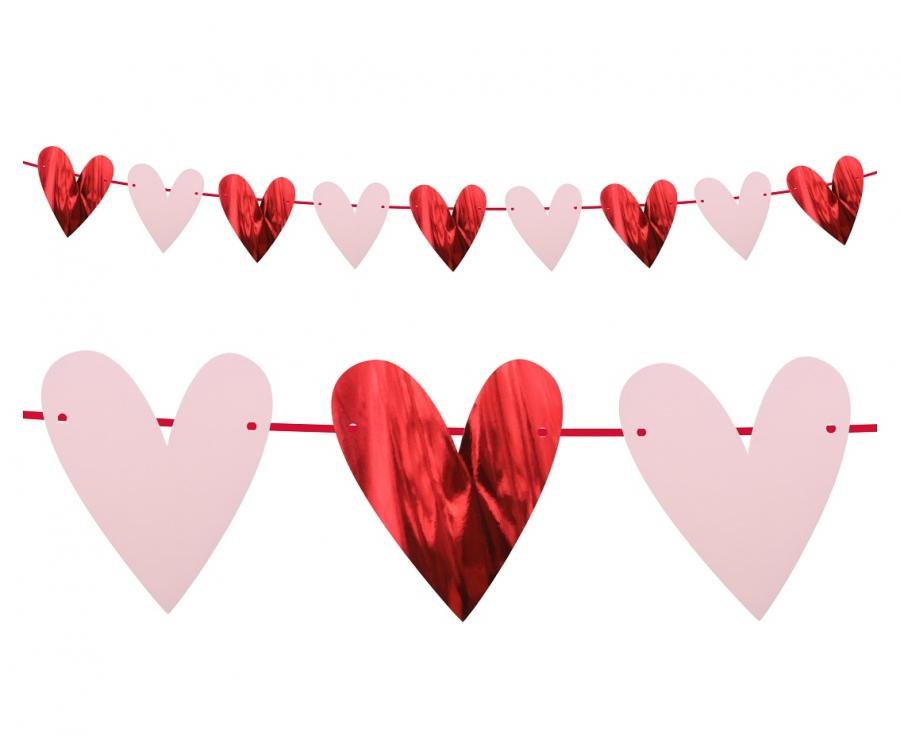 Girlanda papierowa z serduszkami w kolorze różowym i czerwonym. Długość girlandy po rozłożeniu to ok 200 cm. Do zestawu jest dołączony również sznureczek w kolorze czerwonym. Idealna dekoracja imprezy Walentynkowej lub tematycznej!