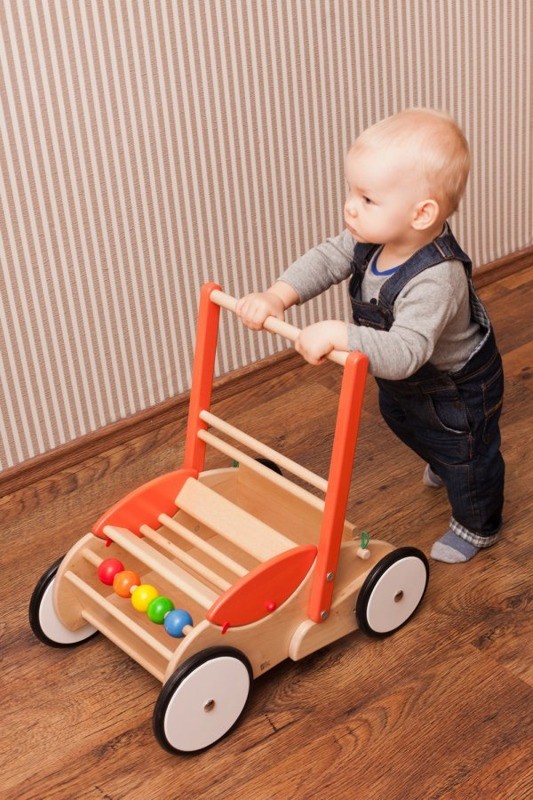 Przepiękny pchacz, bardzo pomocny przy nauce stawiania pierwszych kroków. Pchacz jest wykonany z drewna bukowego, ma przepiękną kolorystykę.