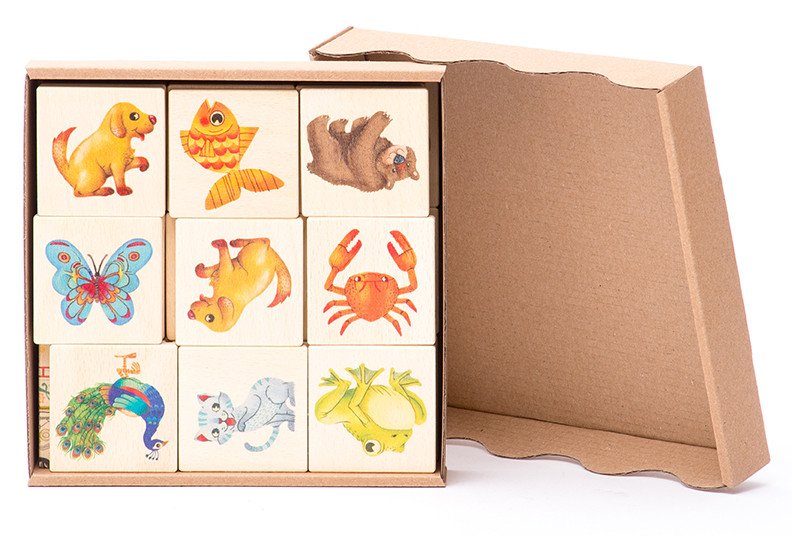 - drewniane bloczki mają wymiary 5 x 5 cm, jest ich 36 sztuk w zestawie (czyli 18par)