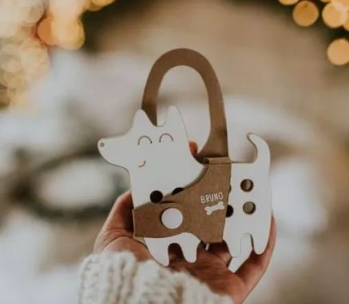 Przeplatanka drewniana w kolorze białym, kształt piesek.