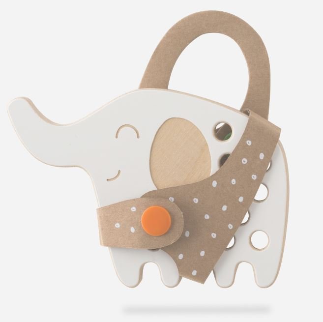 Przeplatanka drewniana w kolorze białym, kształt słonik.
