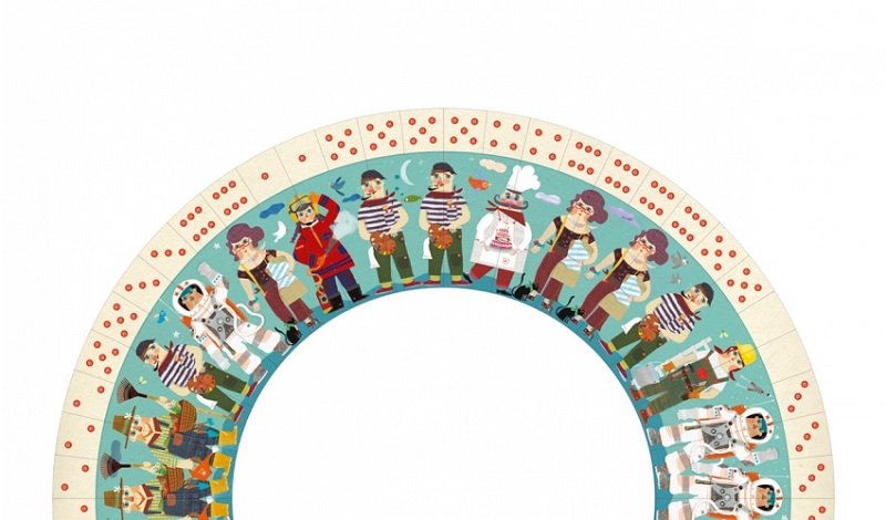 28 pięknie ilustrowanych i wykonanych kafli tekturowych (rozmiar kafla 6x13cm) przedstawiajace różne zawody. Grę wygra ten, kto pierwszy zagra wszystkie swoje kafelki z domina.