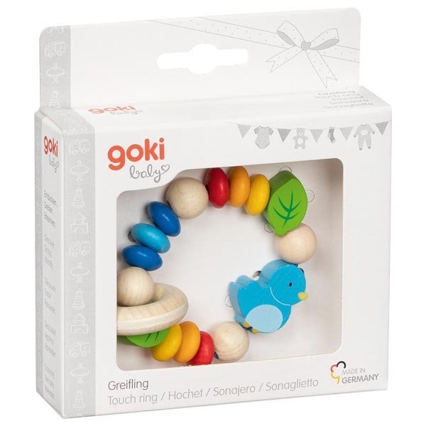 Zabawka wykonana z drewna bukowego, pomalowana farbami na bazie wody bezpiecznymi dla dziecka. Sprawdzi się jako gryzak w okresie ząbkowania jak również zabawka do ćwiczenia odruchu chwytania.