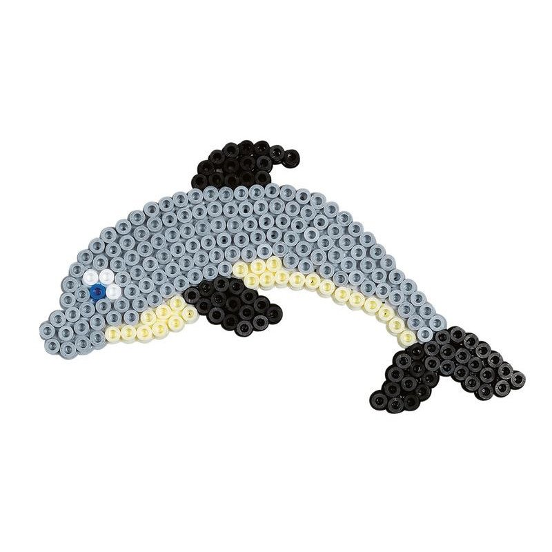 Zestaw koralików do zaprasowywania Hama w rozmiarze midi. Pudełeczko small world zawiera: 2000 koralików, podkładkę w kształcie delfinka, papier do zaprasowywania, inspiracje oraz instrukcję wykonania. Zestaw pozwala na ułożenie: delfinka, konika morskiego oraz rybek.