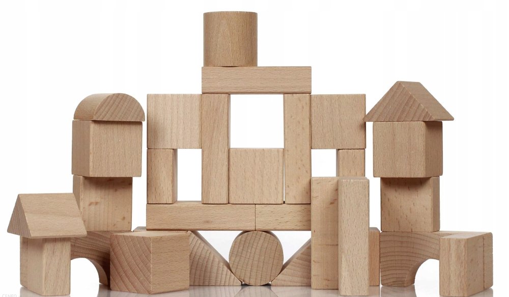 Klocki są w różnych kształtach, między innymi łuki, daszki, romby itp...
