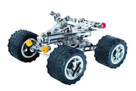 Zestaw metalowych klocków konstrukcyjnych dla dzieci od lat 8. Pozwala na skonstruowanie 3 różnych modeli w tym dwóch rajdówek oraz quad'a. Ponad 180 elementów w tym: metalowe blaszki, śrubki, nakrętki, koła, krzesełko dla kierowcy, narzędzia do skręcania, graficzna instrukcję wykonania.