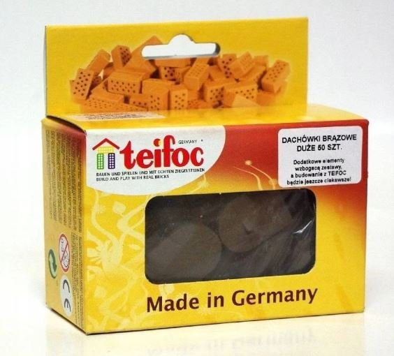 Duże, brązowe dachówki, 50 sztuk. Dodatkowe elementy wzbogacają Twoje zestawy, a budowanie z Teifoc staje się jeszcze ciekawsze.