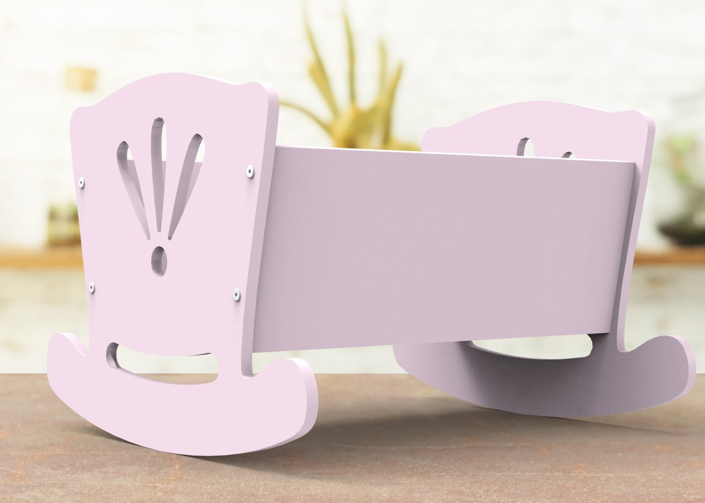 Śliczna różowa kołyska dla lalki lub przytulanki, wykonana z drewna brzozowego.