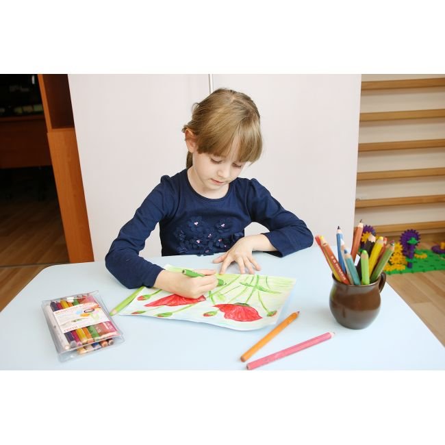 - Kształt kredki pozwalają na jej swobodne i łatwe trzymanie.