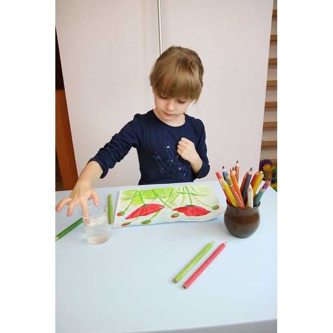 - Kredki są wydajne, bardzo wytrzymałe, odporne na łamanie przy upadaniu.