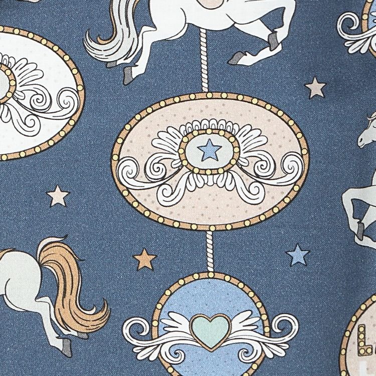 Bajeczna trójkątna chustka na głowę z miękkiej, przepuszczającej powietrze bawełny wzór Lunapark by night. Chroni główkę przed wiatrem i słońcem, pozwalając skórze dziecka oddychać.