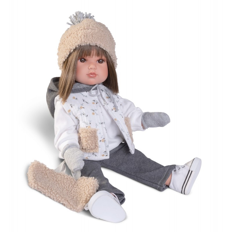 Lalka ma 45 cm wysokości. Odpowiednio ułożona będzie stała. Można ją także usadowić w pozycji siedzącej. Jest w całości wykonana z winylu: rączki i nóżki można umieścić w pozycji góra/dół, główkę można przekręcić na boki.