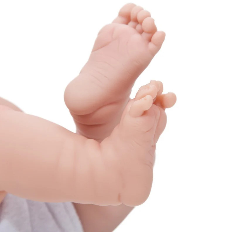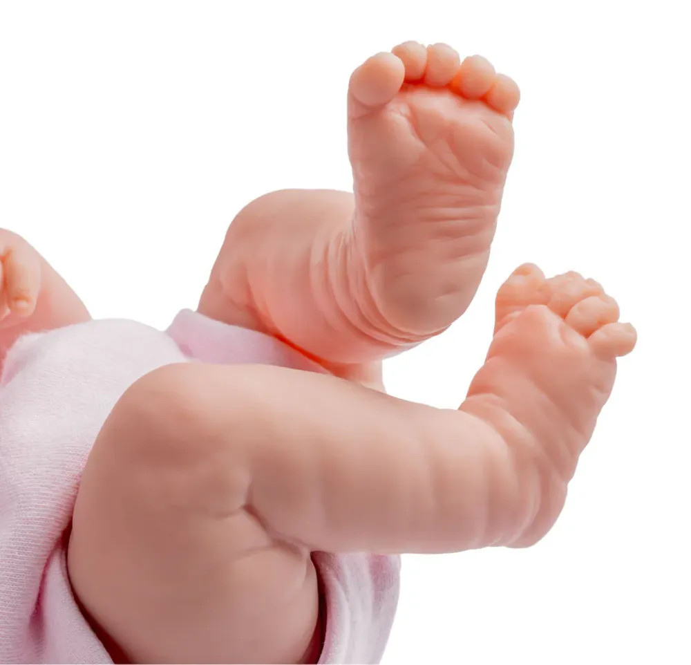 - noworodek wykonany jest w całości z winylu, ma piękną aksamitną skórę która jest bardzo miła w dotyku,