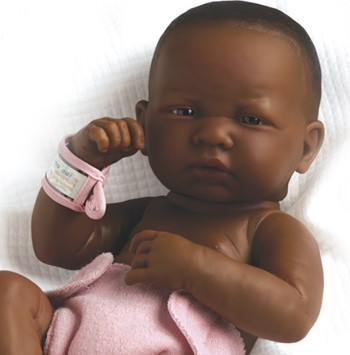 Ciemnoskóry noworodek dziewczynka, który wygląda jak prawdziwe dziecko.
