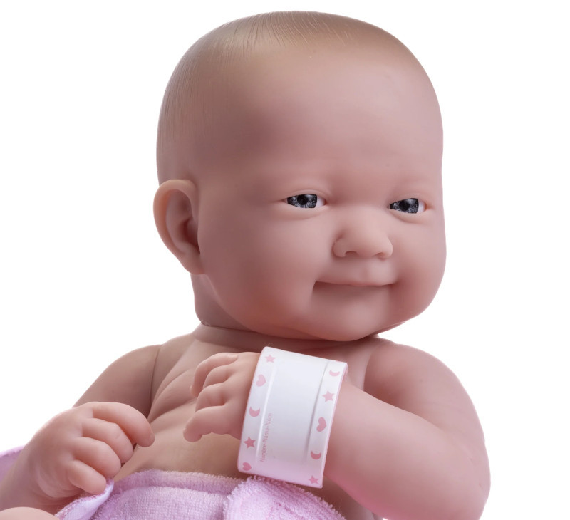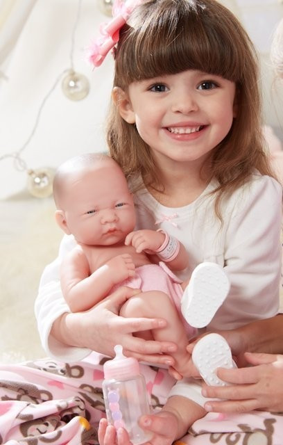 - lalka ma podkurczone nóżki jak prawdziwy noworodek (można ją posadzić, jest wtedy lekko pochylona w przód),