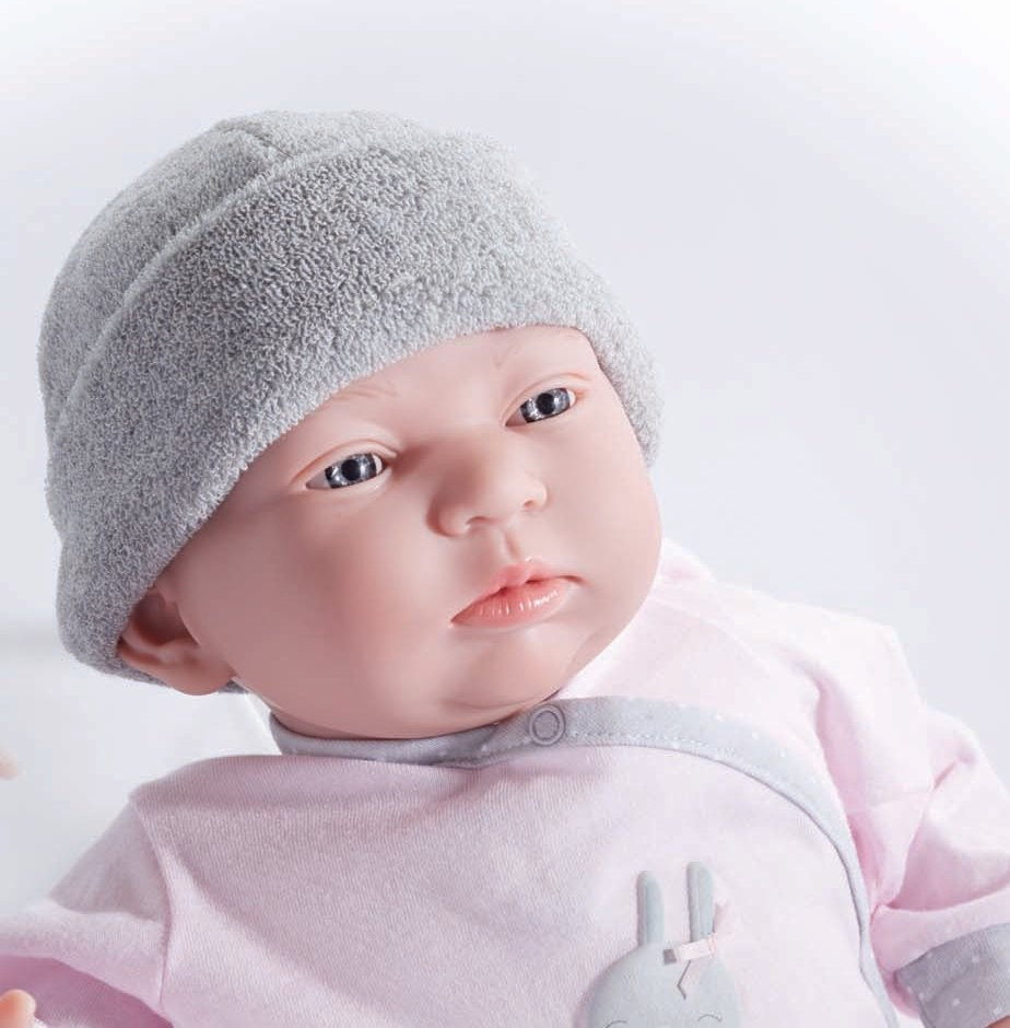 Lalka ma długość 51cm, można ubierać ją w niemowlęce ubranka.