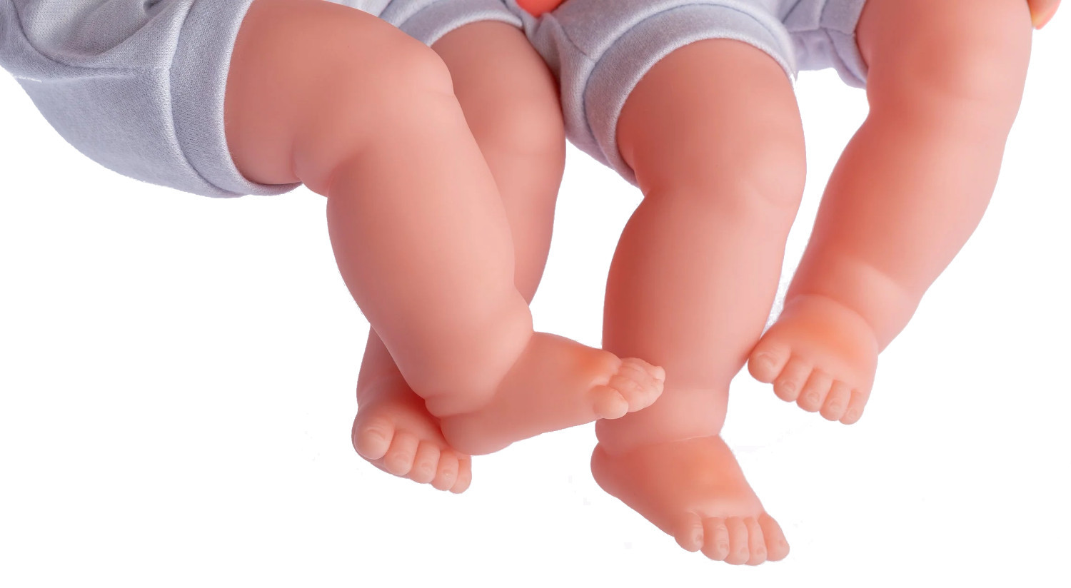 Laleczki mają delikatne żłobienia na główce, które imitują włosy niemowlaka.