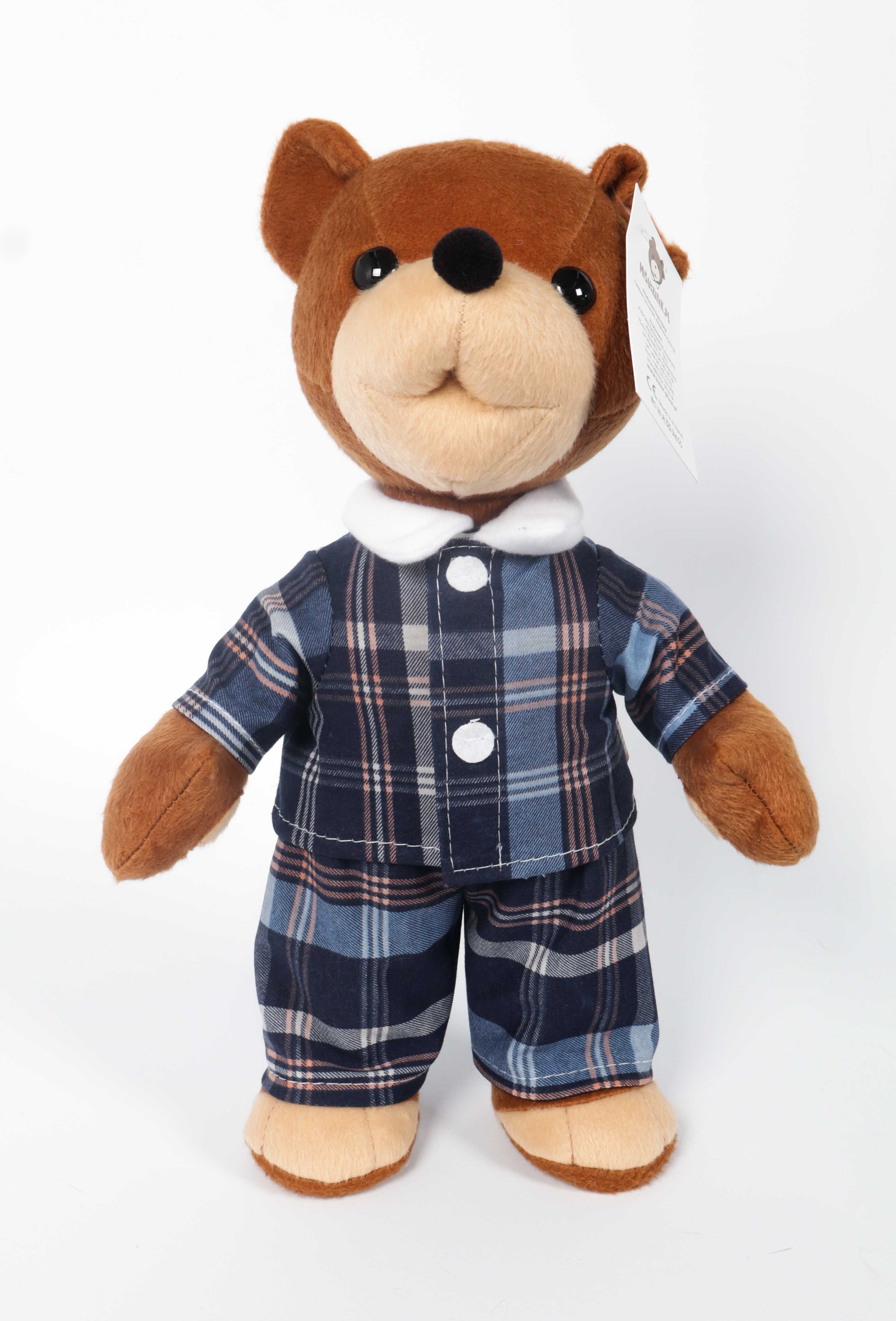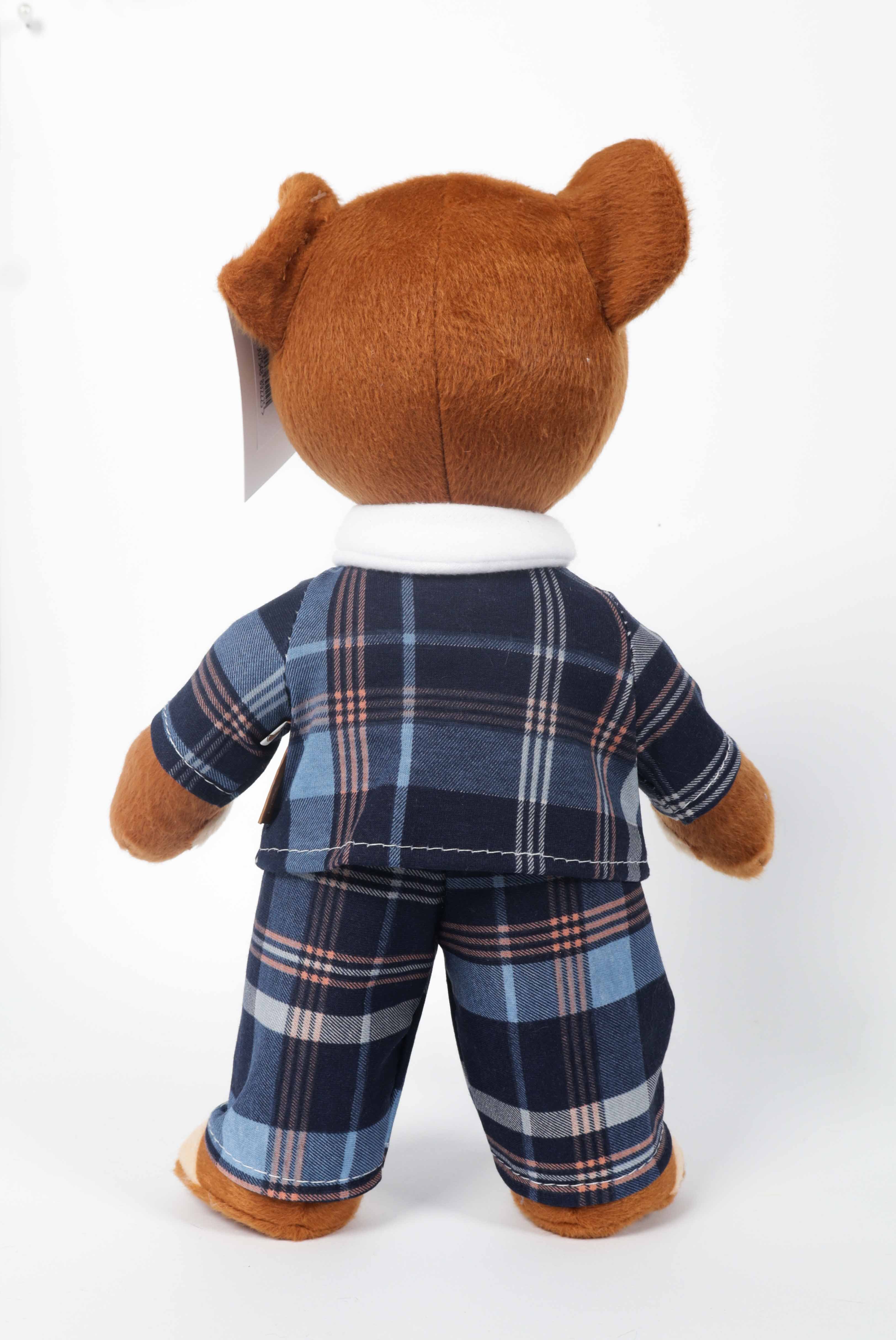 Pluszowy miś z klapniętym uszkiem z kultowej polskiej dobranocki -Miś Uszatek. Ta wersja maskotki to 30cm miś w piżamce w kratkę (kolor piżamki granatowy w kratkę).