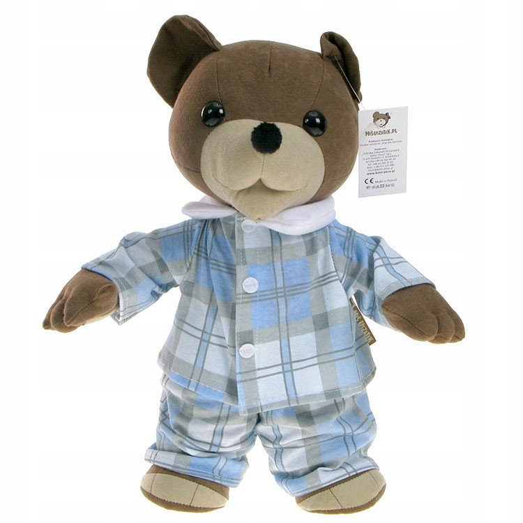 Miś Uszatek to znana wszystkim dzieciom postać bajkowa. Nasz miś ma oczywiście klapnięte uszko, jest ubrany w piżamkę w niebiesko-białą kratkę z białym kołnierzykiem. Ubranka uszyte są z dzianin bawełnianych i poliestrowych.