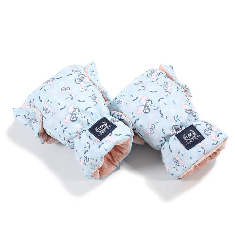 Zewnętrzna warstwa mufki wykonana została z wodoodpornego ortalionu we wzorze Cappadocia Butterfly, zaś wewnętrzna z miękkiego velvetu w kolorze Powder Pink.