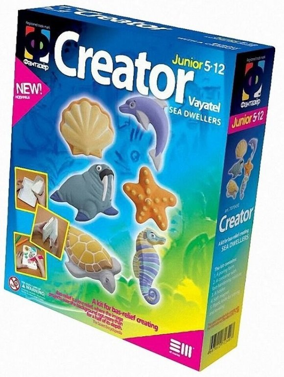 Zestaw kreatywny z akcesoriami do wykonania obrazków gipsowych z morskimi zwierzątkami.