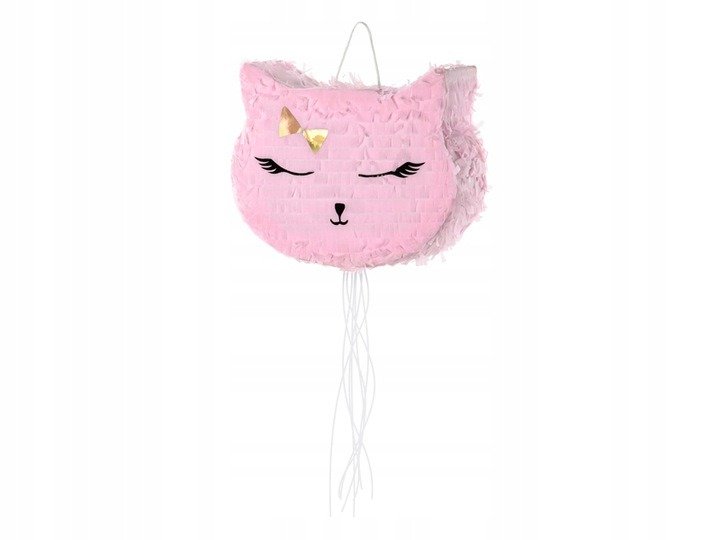 Piniata w kształcie uroczego kotka, idealna na przyjęcie urodzinowe lub imprezę w ogrodzie. Wystarczy wypełnić piniatę cukierkami lub małymi zabawkami a radości i dobrej zabawy na przyjęciu nie zabraknie.