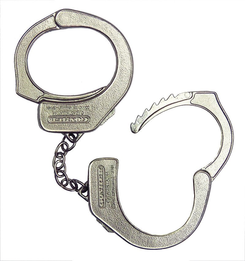 Odznaka policyjna wykonana jest z plastiku, natomiast kajdanki w całości z metalu.